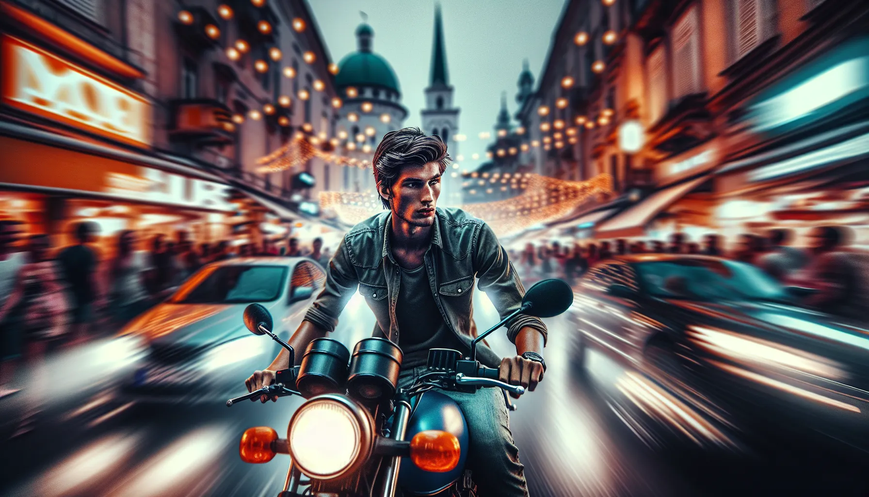 Jurnjava na motoru kratki sadržaj: Radnja prati mladića koji, vozeći motor kroz gradsku vrevu, doživljava niz neočekivanih situacija i sukoba, suočavajući se s pos