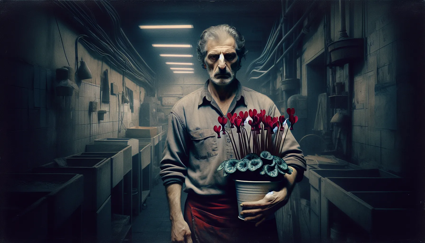 Tu krvave ciklame postaju znak otpora. Glavni lik ih donosi na radno mjesto, naspram svima koji šute ili gledaju u pod. To nije samo gesta, već osobna borba protiv nepravde, nešto nalik na paljenje svijeće u mraku skladišta. Sve pršti od nervoze – pogledi kolega, čudna šutnja šefa, u zraku se može rezati napetost nožem.