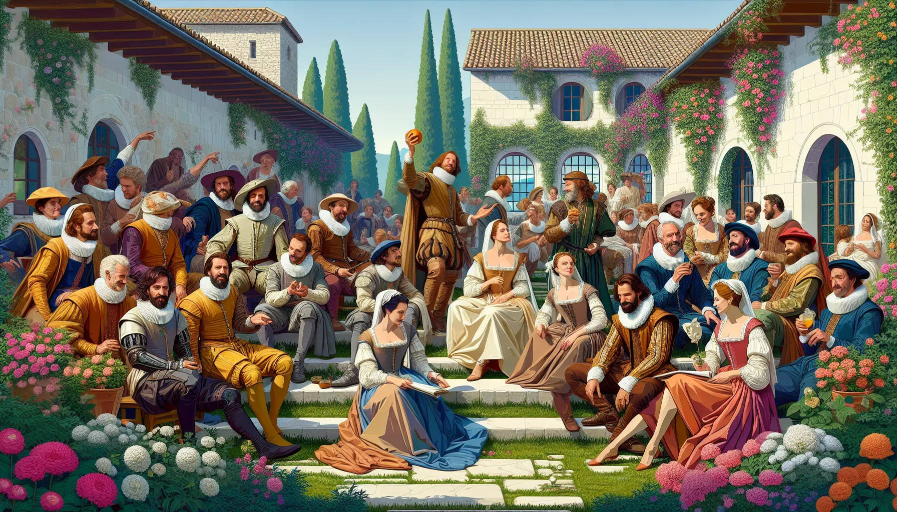 Decameron je zbirka od sto priča koje deset mladih ljudi pričaju tijekom deset dana, skrivajući se od kuge u Firenci. Svaka priča donosi različite teme, od ljubavi i humora do kritike društva, stvarajući bogatu sliku tadašnjeg života.