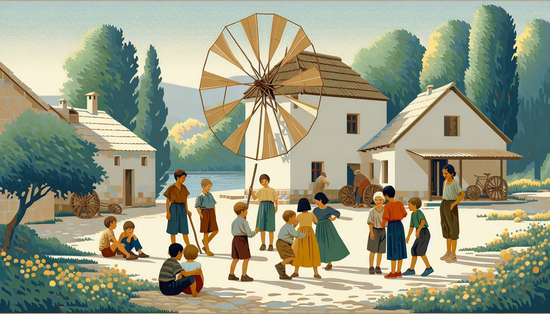 Dani im prolaze kroz niz dugačkih, znojnih ljeta i kišnih popodneva—klasika seoskog života. Nema žurbe, nema zvonjave školske zvonare koja upozorava na kraj “pauze”—tu se vrijeme mjeri smijehom, povremenim džeparenjem jabuka iz susjedovog voćnjaka, i lopatom kojom vade mulj iz starog mlina. Svatko iz družine ima svoj zadatak, a osim što popravljaju ruševine, isprobavaju i granice strpljenja odraslih. Tko god se ikad izgubio u igri do mraka zna taj osjećaj slobode.
