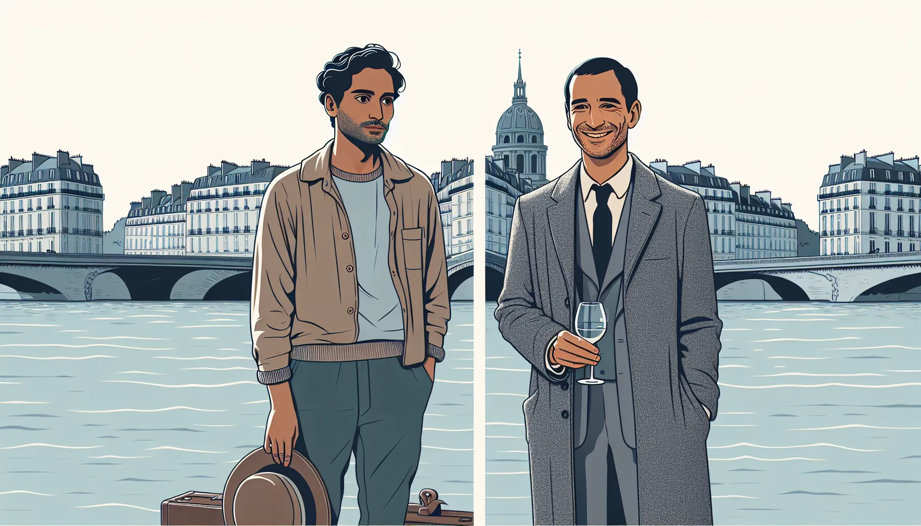E sad, kad se priča o “Dva prijatelja” — likovi nisu samo imena u knjizi. Njihov svijet, iako na prvi pogled običan, skriva teške odluke, suptilne poglede i onu specifičnu tišinu koja više govori nego pola političkih govora. Pa tko su ti ljudi, što ih pokreće, i što se događa kad mirna nedjelja na obali Seine preraste u životnu dilemu? Zaronimo u njihove živote… ili barem njihove dobro skrivene brige.