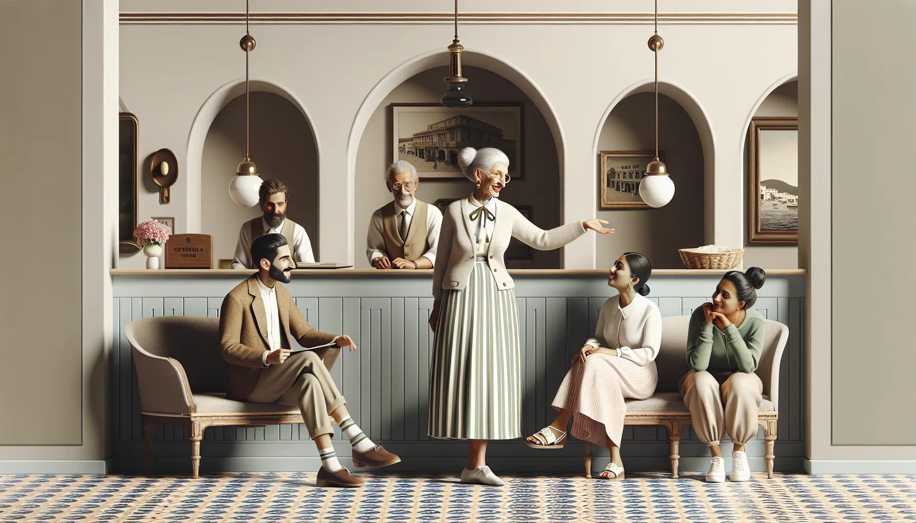 Recepcionarka Ljubica i Branko vječno vode borbu oko inventara i rasporeda. Njihovi dijalozi podsjećaju na stare bračne svađe, ali, realno, više su pitanje birokracije nego prave ogorčenosti. Zanimljivo kako im se glasovi automatski stišaju kad kroči Misteriozni gost—odjednom svi priguše ton, kao da netko donosi inspekciju.
