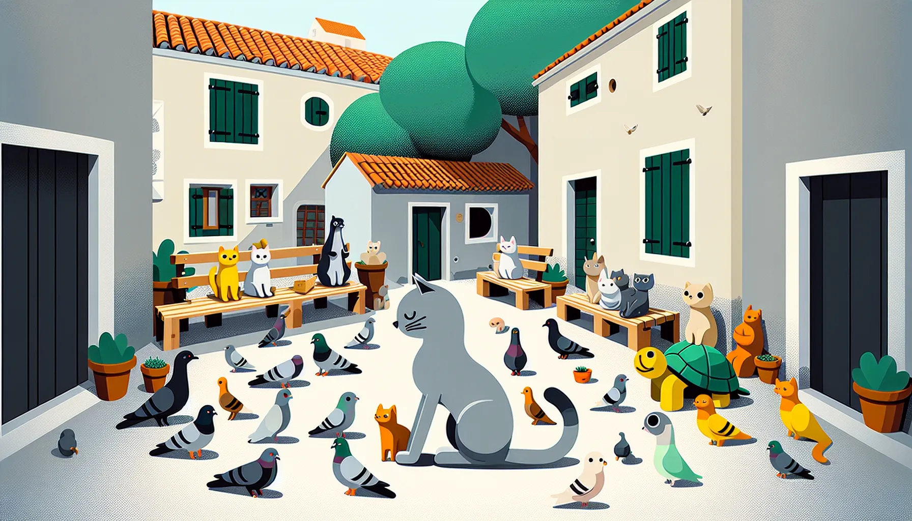 Zaboravite one bajke smještene u daleku, maglovitu prošlost… Jer “Ljubavni slučaj mačka Joje” diše sasvim drugačijim plućima — radnja se događa tu ispred nosa, na jednom simpatičnom gradskom dvorištu, možda upravo u vašoj ulici. Nema dvoraca (osim ako ne računate pseću kućicu koja se ljeti pretvara u kraljevski tron) i nema začarane šume — samo obični asfalt, stare klupe i ograda koju svatko od lokalnih mačaka zna napamet.