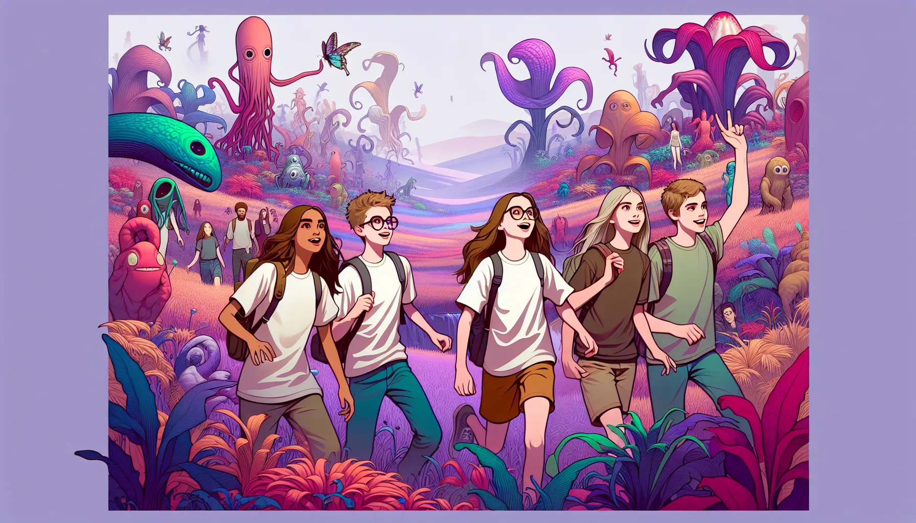 E sad, kad se kaže “avantura”, to uglavnom znači nevolje… Ovdje toga ne manjka! Učenici se brzo moraju snaći: ljubičasta trava, sumnjiva bića koja malo previše liče na zgodne prikaze iz SF crtića, pa još one neobične zvukove — kao da je netko miješao zvuk usisavača i harmoniku.