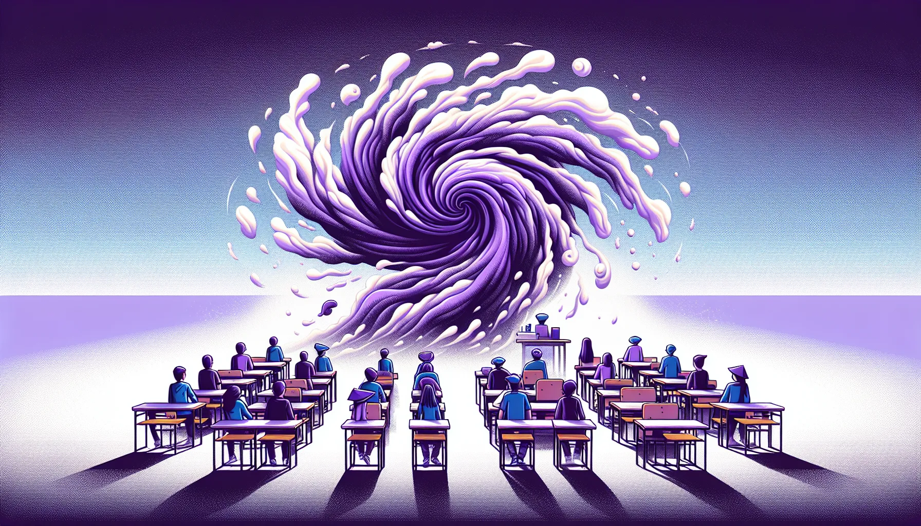 Usred sasvim običnog sata, dolazi do nesvakidašnje greške u eksperimentu. Rezultat? Cijeli razred — hop! — doslovce teleportiran na nepoznat, ali izrazito ljubičasti planet. Nema tu nastavnih planova, niti pauze za sendviče. Samo čuđenje i pokušaj da se svi saberu, okruženi nepoznatim mirisima i bojama.