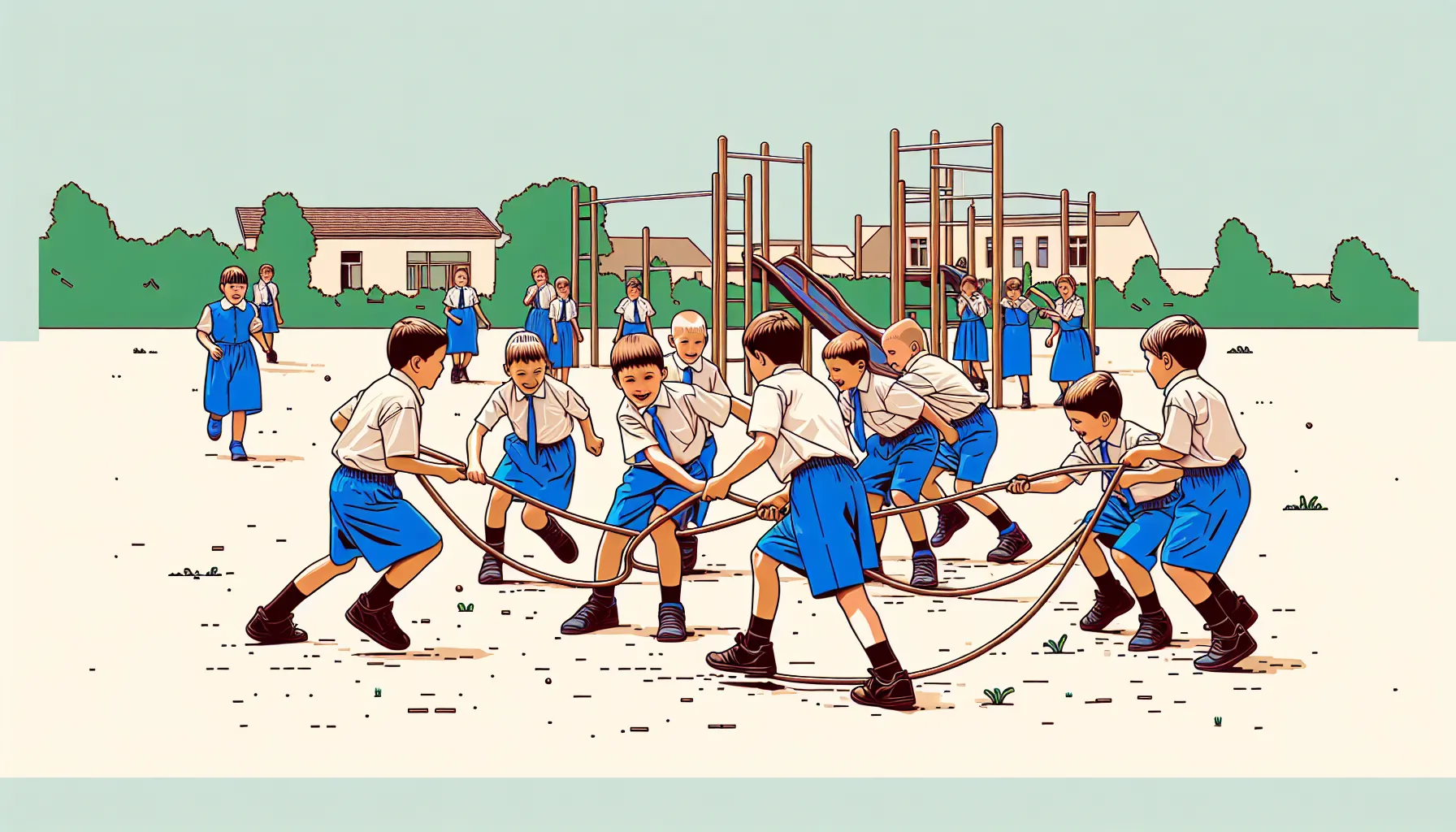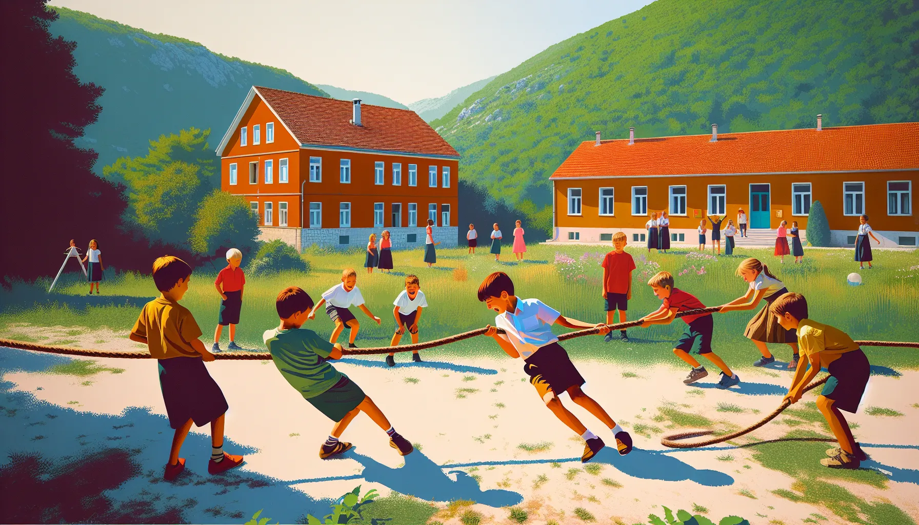 I taman kad mislite da znate tko pobjeđuje—ma ni blizu. Netko iz društva “igrom slučaja” pronađe konop i tu krene prava drama. Djeca se odjednom podjele u dvije frakcije—jedni slave, drugi su ljuti kao da je derbi propao. Nema tko nije barem na trenutak povrijeđen. Osjeti se ona tiha solidarnost kad netko gubi, pa ga ostatak ipak ne ostavi samog pred vratima (znate taj osjećaj, zar ne?). Usput, u pozadini se čuje susjedino glasno zalijevanje vrta – život u susjedstvu ne miruje ni za vrijeme najveće dječje drame. Odrasli i dalje “svoje” – neki smijući se ispod oka, drugi vičući “Dosta igre!”.