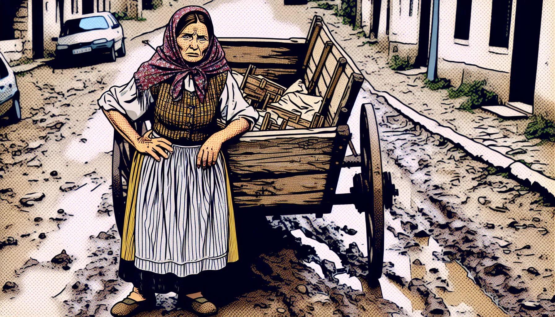 Tko bi rekao da jedna stara drvena kola na blatnoj cesti mogu ispričati cijeli jedan rat? Radnja drame odvija se tamo gdje mir miriše na raskvašeno blato, a zvuk topova možda zamjenjuje cvrkut ptica — usred nepredvidljive Europe sedamnaestog stoljeća. Brecht sve smješta duboko u doba Tridesetogodišnjeg rata, da, to je ono kaotično vrijeme između 1618. i 1648. godine kada je kontinent gorio, a granice su se premještale brže od prodavača na sajmu. Nije tu mjesta za ugodnu kućicu na okućnici — likovi voze kola kroz zaleđene švedske ravnice pa skreću u blatnjave njemačke gradiće i puste poljske drumove.