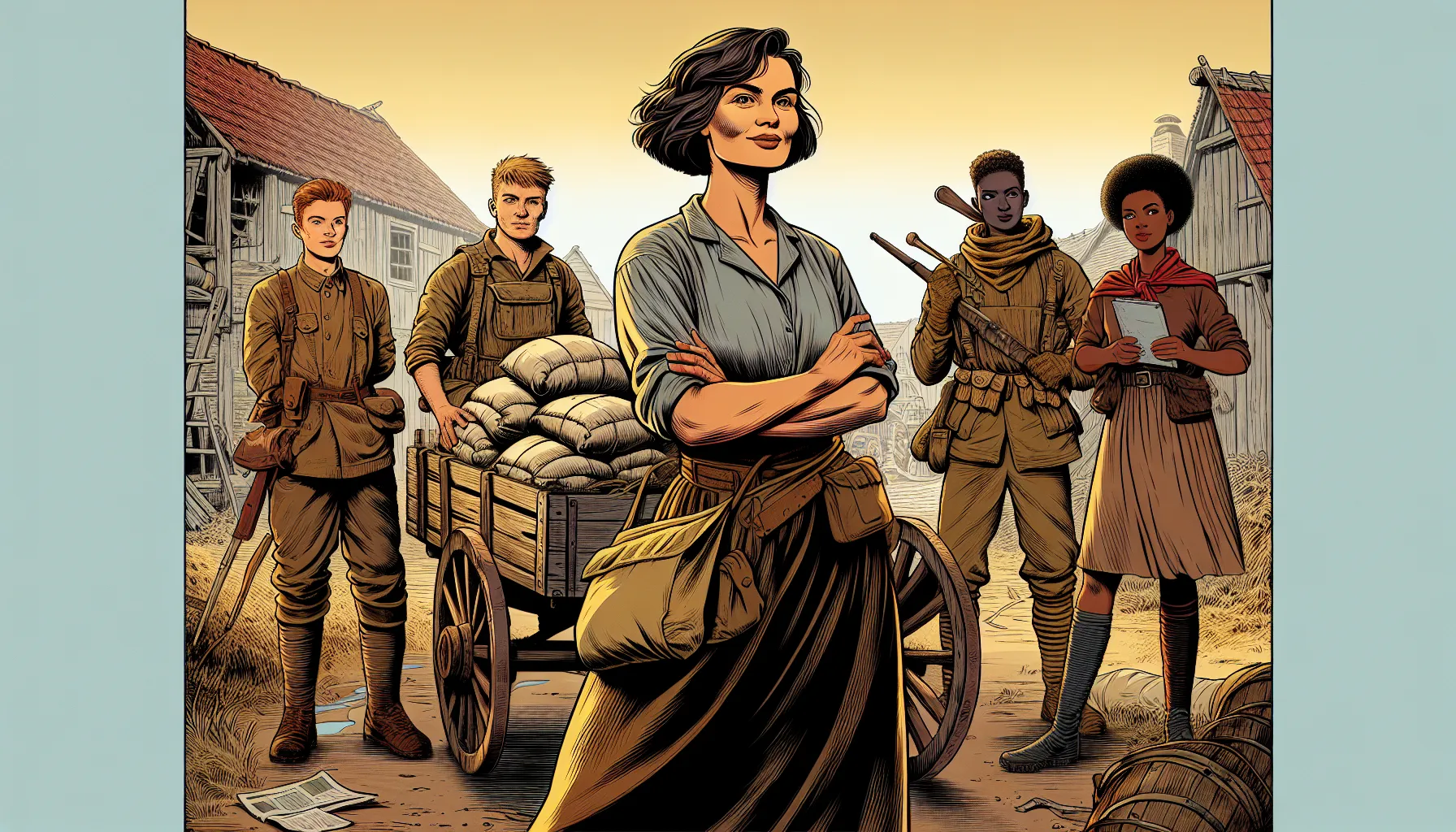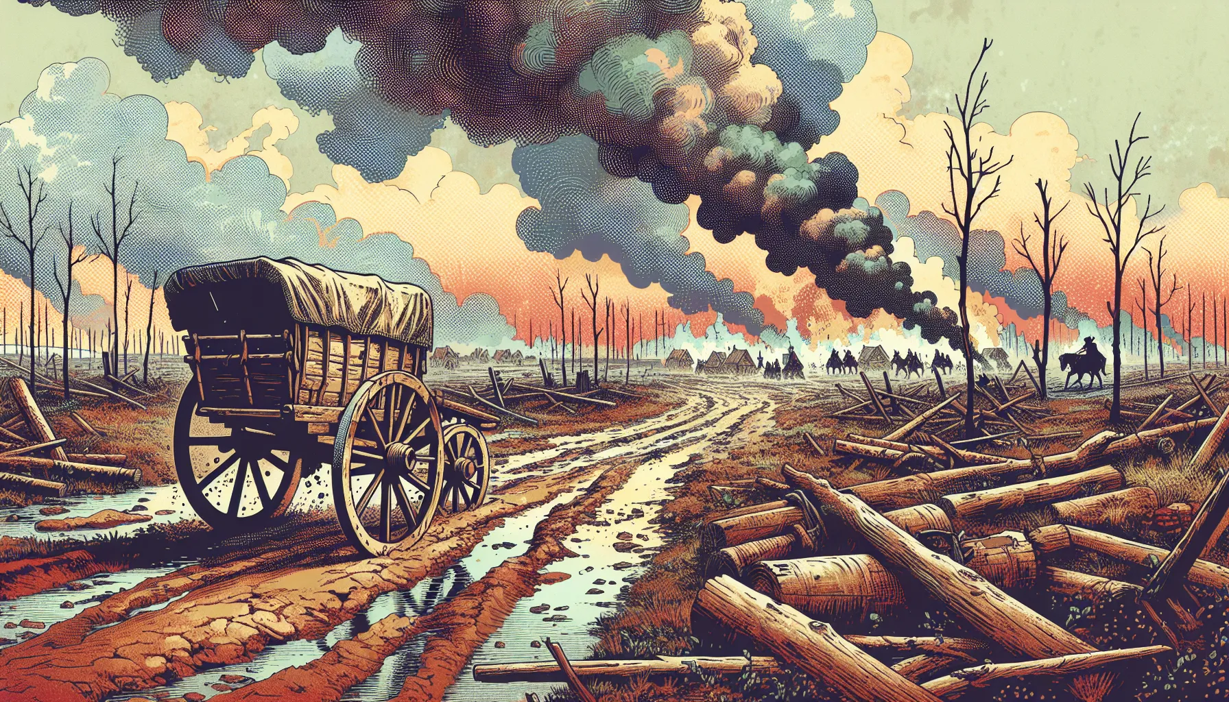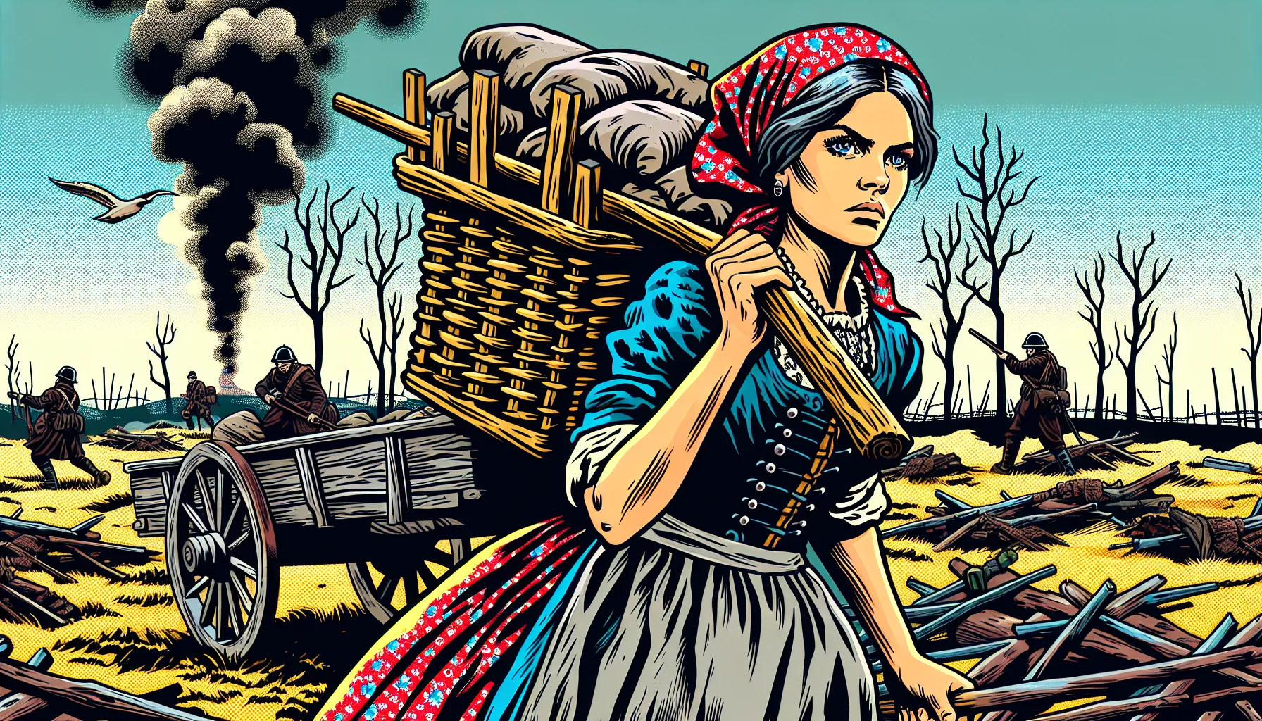 Zamislite da ste tamo s njima… Svaki gradić nova je opasnost, a svaki tjedan donosi drugi krajolik – danas rijeka, sutra opustošeno selo, pa prekosutra tabor vojske gdje vatre ne gore iz topline, nego iz potrebe da se preživi. Nema stalnog doma — samo kotači koji škripaju, nebo puno dima, a sjećanja koja se slažu poput teških dekica u zimsku noć. Usred svega toga traži se prostor za trgovinu, život, poneki smijeh i poneku suzu.