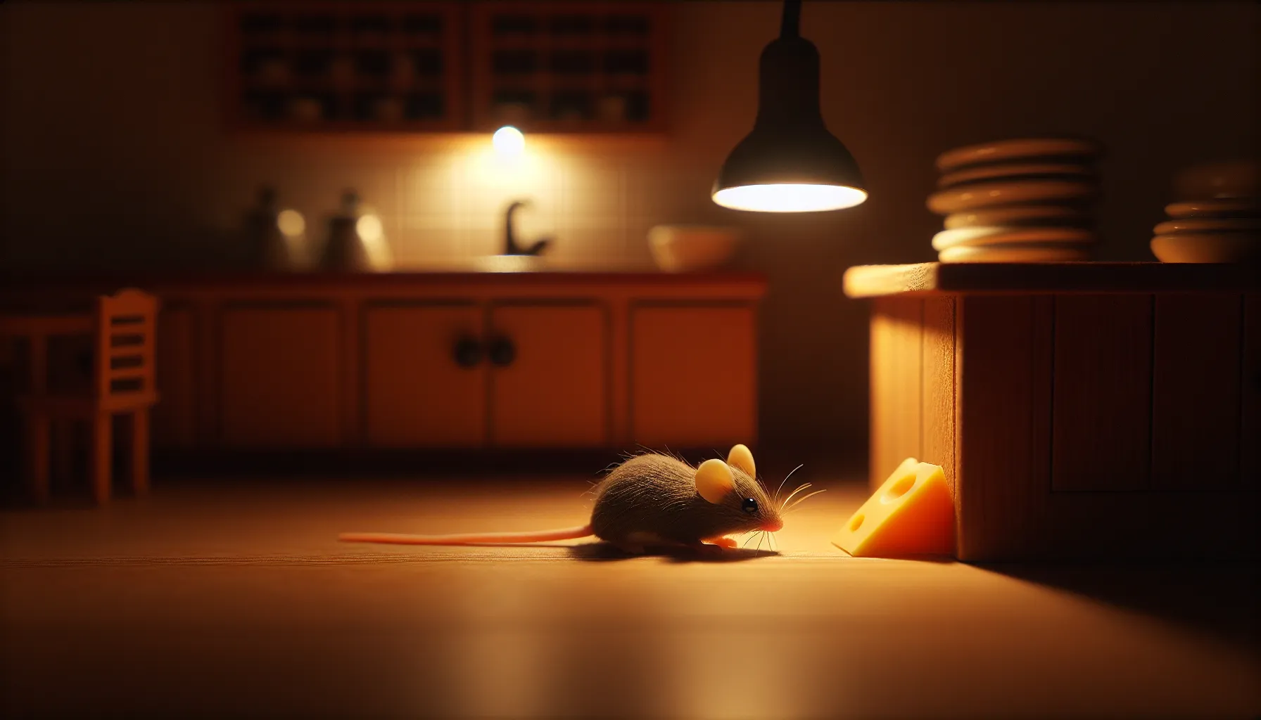 Radnja napreduje kao promjena godišnjih doba ispod prozora. Miš kopa, trza uši na svaki šum, njuška ispod ormara, osluškuje hoće li ga netko otkriti. Uvijek nekako hoda linijom između hrabrosti i instinkta za bijegom. Nije bitka epskih razmjera, već borba s vlastitim granicama i navikama. Jedan običan komad sira pretvara tu večer u cijeli izazov.