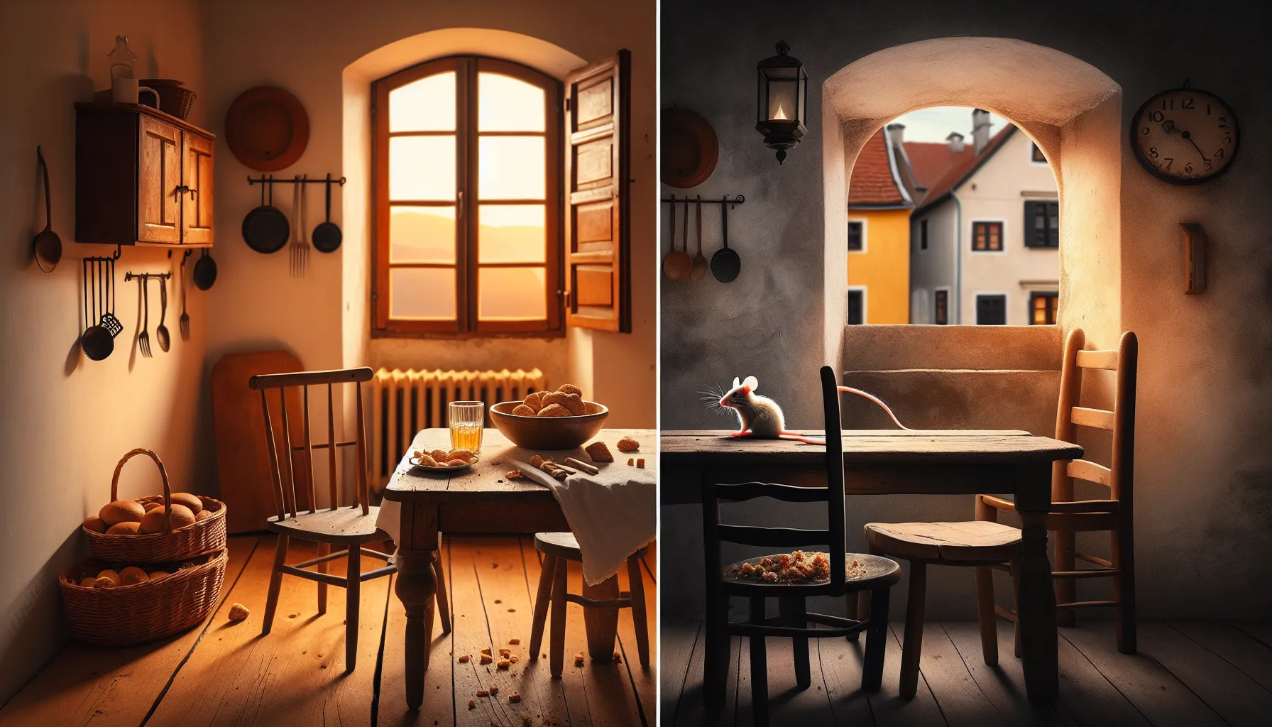 Na trenutak se sve uroti protiv njega—ulovi ga svjetlo iz kuhinje, škripi ladica, u daljini žmirka neka zimska lampica. Ipak, ne posustaje. Vidi mrvice kruha i shvati: nije samo sir važan, nego iskustvo potrage i ona mala pobjeda kad nakon puno pokušaja ipak ugrabi nešto za sebe.