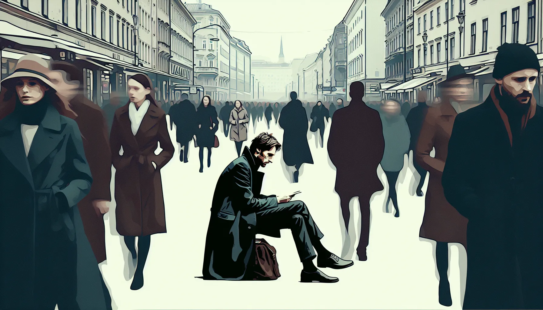 Sad kreće drama — ali drama bez vikanja, više na toj ultra tihoj, šimićevskoj frekvenciji. Pjesnik gleda vlastitu poeziju kao što majstor gleda alat koji je nekoć bio božanstven, a sada skuplja prašinu. U pozadini, ljudi žure, gradovi bruji, ali nitko ne zastane ni na tren. Danas bi ga prešli i algoritmi društvenih mreža.