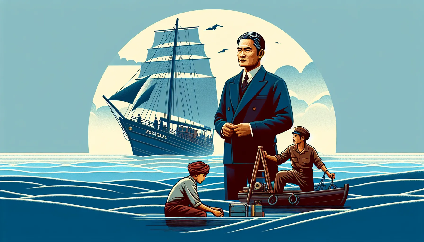 Vrijeme? Eh, tu nema ni vremenskih strojeva ni smartphone kalendara. Radnja Zorogaze klizi negdje kroz 20. stoljeće, nije oko datuma, već oko osjećaja vremena kad su ljudi još vjerovali da priče sa škripom broda i šapatom vjetra imaju težinu. Dani se tope jedan u drugi, brodska rutina bez slike kopna—taman kad pomisliš da je petak, može biti srijeda, ili možda ni to, jer more ti pomiješa satnicu gore nego Zoom sastanak u 8 ujutro.