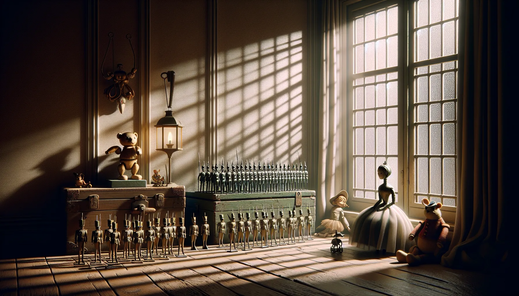 Vrijeme baš i nije naznačeno, nema tu točnih datuma, ali ton – sve ukazuje na stari svijet, onaj bez struje i pametnih telefona. Tko-tko još danas ima kolekcije limenih vojnika, a da se time ne bavi za ozbiljnu lovu na eBayu? Ako baš tražite točan trenutak, rekli bismo: ravno u zlatno doba bajki, kad su svjetiljke tresle sjenke po tepihu, a svijet izvan sobe bio isti misterij kao crta izblijedjele tapete.