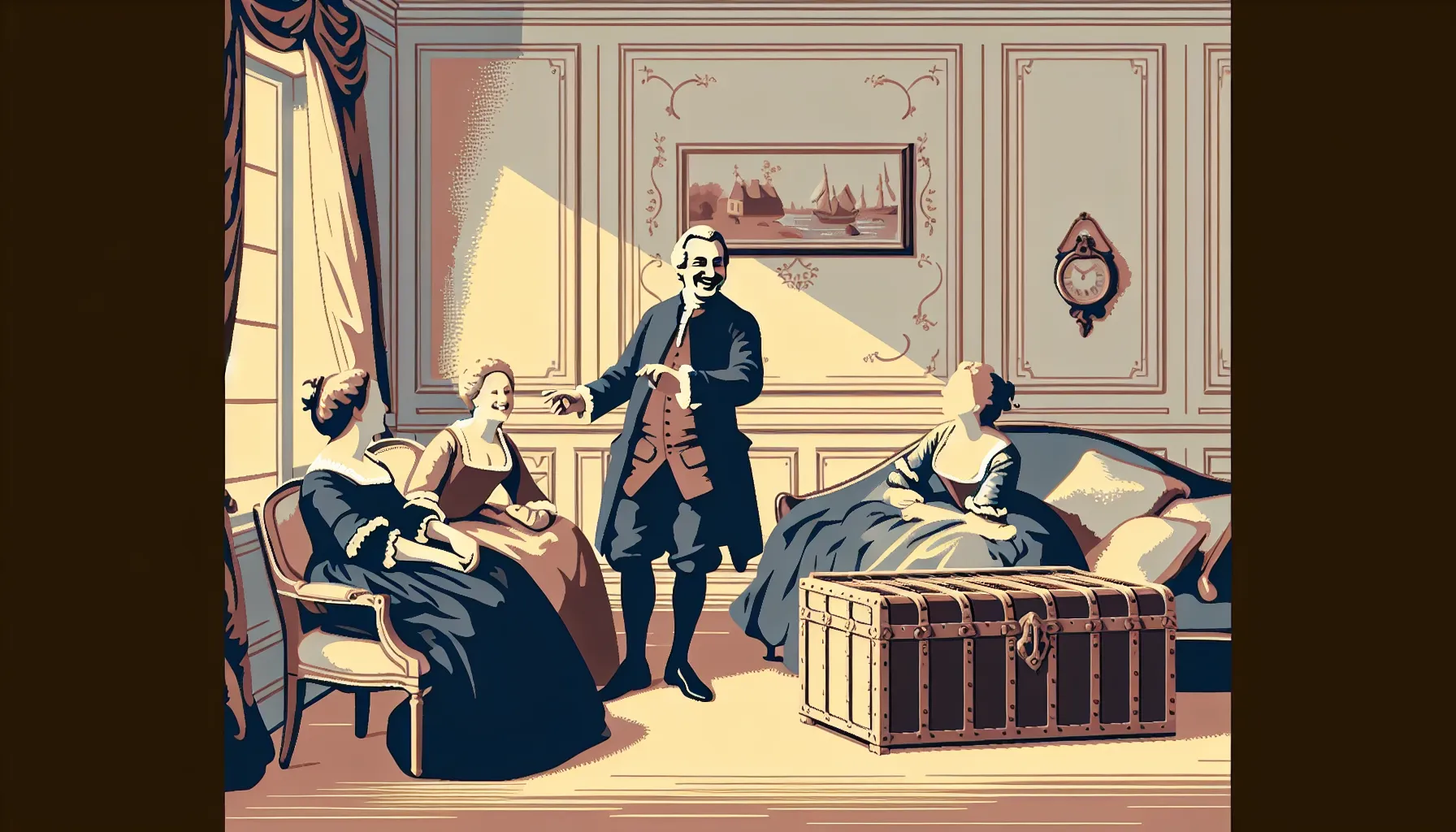 U međuvremenu, kroz sobu defiliraju slugani s mudrim doskočicama, dogovaraju se vjenčanja i brzi preokreti. Tko je na čijoj strani? Kome će pripasti srce, a kome škrinja? Jedan lažni dogovor, i sve se počinje raspetljavati brže od konca na staroj vesti.