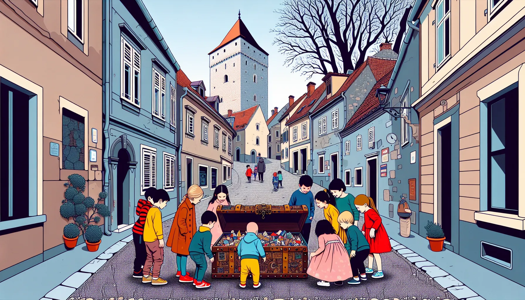 Vrijeme radnje? Klasičan današnji Zagreb uz povremene fleševe u prošlost – kad je škrinja skrivena i djeca provode vlastiti CSI: Gornji grad moment. Subote su rezervirane za šaptanja iz prošlih stoljeća, a sunčana popodneva – e, tad djeca jure po stepenicama kao da su svi prepustili ključ od svih vratiju samo njima. Nema tehnologije ni pretjeranih mobitela, već zvuk lopte, škripe bicikla i zadihanih glasova – zvukovi života na Gornjem gradu, ispod krošnji kestena na jesen.