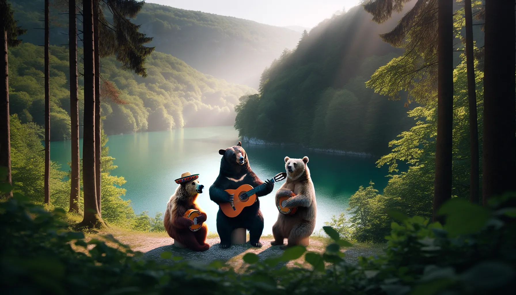Zamislite tri znatiželjna mede usred šume koju biste lako mogli zamijeniti za neki klasik hrvatske planinarske rute—recimo šumovite obronke Medvednice, ali s manje penjača i puno više… medvjeda s gitarom. Radnja ne luta u nepoznata prostranstva: sve se odvija baš tamo gdje pada sjena guste krošnje, među mahovinom i mirisom svježeg, blago vlažnog tla. Ako slučajno čujete gitaru dok šetate kroz šumu—ne, niste ludi, možda ste samo zadivljeni kao i naši medvjedi.