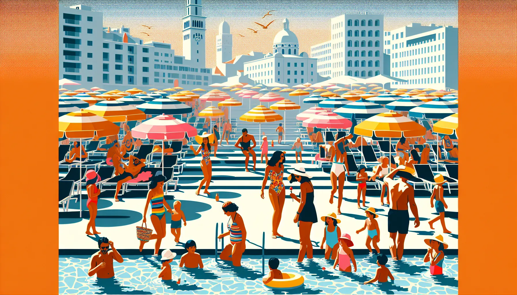 Jutro je, zrak stoji, a klor miriše u nosnicama — netko je povikao “tko zadnji u bazen, taj je gnjida!” i svi skaču. Djeca, odrasli, čak i susjedov pas (čuješ glasno prskanje, osjećaj općeg kaosa). Atmosfera je naelektrizirana, brčkanje, vikanje, poznata lica iz kvarta — ostavljaš ruksak na pločicama, sunce vam već probija kroz trepavice.