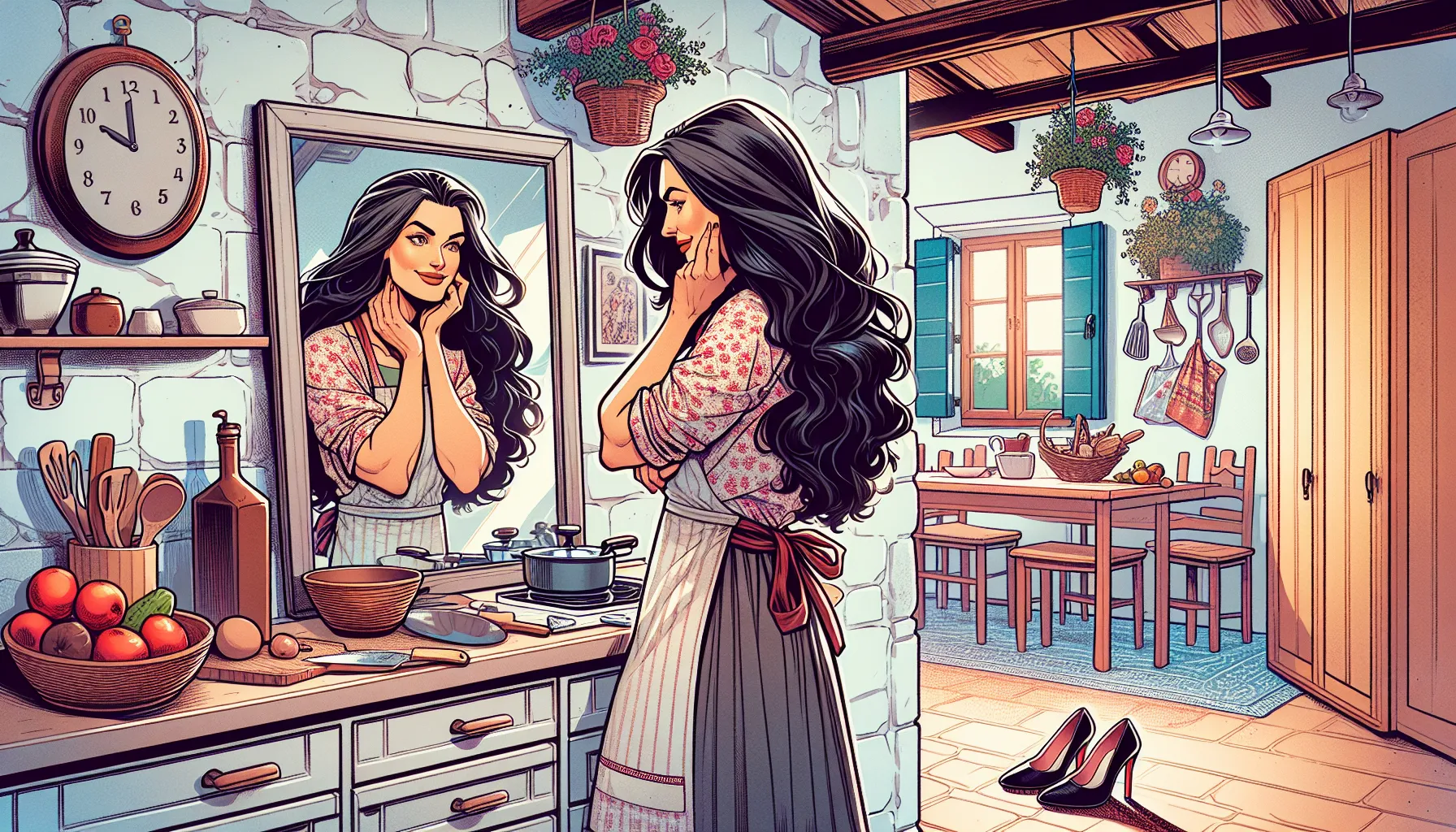 U kvartovskoj trgovini susreće bivšu simpatiju, što joj nikako ne olakšava situaciju. Razgovor pun “slučajnih” dodira i starih šala izaziva staru vatru, ali i paniku — škakljivi osjećaj da nije “gotova”. Kako večeri prolaze, ona povremeno izlazi iz svoje svakodnevice u svijet svojih maštarija i malih pobuna: šetnje bez cilja, tajni chat, previše vremena na balkonu “radi zraka”… Štikle i pregača, stari CD-i, poruke koje ne bi trebala slati i hrabrost koja se javlja u sitnim dozama. Sve to, naravno, ne gine bez grižnje savjesti.